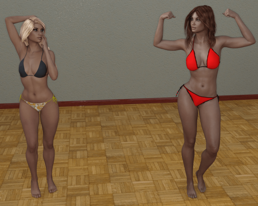 The fighters having entered the apartment after waiting all evening for their match time and both looking ready to go for this big match. Callie and Sierra are introduced and the crowd seems fired up still from the prior matches. Its very loud in the apartment as the Sierra and Callie exchange comments with one another. While the fighters can’t be heard over the loud crowd they exchange fist bumps so it seems the pre-match exchange is pleasant enough. The officiator waits for the room to quiet down a bit as both fighters anticipate the start of the match. Once things settle in, the officiator calls out “Good luck tonight ladies. This fight for the AWC World Championship will begin NOW. FIGHT LADIES FIGHT!!!”Callie and Sierra move quickly towards one another and immediately grab hold of one another. The fighters both begin to grunt and strain as they attempt to overpower the other to gain an early advantage. “Come on!!!” grunts Sierra as she tries to pull Callie off balance. The blonde responds with a grunt as she shuffles her feet to avoid Sierra’s attempt.Sierra twists her body and breaks free of Callie’s grasp as she seizes control in the early moments of the round. With both hands in Callie’s blonde hair, Sierra yanks her forward and pulls down on her hair as she attempts to bring the blonde off balance to set herself up to apply a hold on her opponent.“Got ya” hisses Sierra as she bends her opponent over at the waist and tries to yank her into a headlock. Callie resists Sierra’s attempt as she grunts out in pain from the hairpull. “Noooo” grunts out Callie as she slips her arm behind Callie and grabs hold of her backside. The two again reach a stalemate as Sierra fails to pull Callie into the headlock she initially wanted to apply. Callie manages to kick her foot into Sierra’s lower leg forcing Sierra to stumble off balance. Using that to her advantage, Callie is able to bring Sierra down to her knees and slips behind wrapping her opponent up and partially apply a full nelson hold as she tries to gain control of Sierra who is trying to escape the blonde’s grasp.After several moments of grappling for control, Callie forces Sierra to the floor on her belly and tries to slide atop her back. “Got ya!!” grunts out Callie as she grabs hold of Sierra’s arms looking to bend them behind her and increase the pressure on her body. The crowd cheers on their favorite fighter and the room seems to be fairly evenly divided in their support in the early moments of the fight. “Get off me!!!” snaps out Sierra as she powers out of the hold tossing Callie off her back and rolling to her side. Callie, however, stays right with her much to Sierra’s surprise as the blonde mounts Sierra from the side. After another several moments of grappling for control, Callie slides her legs around Sierra.With Sierra trapped in her grasp, Callie slips her arms up and around Sierra’s neck trying to cut off her air supply or get her in a simple sleeper hold. The blonde’s grip isn’t particularly great, but it serves the purpose of continuing to wear down Sierra in the first round. The constant pressure of the later half of the round has Sierra panting and her chest heaving up and down as Callie clings to her grip all the way to the end of the round.